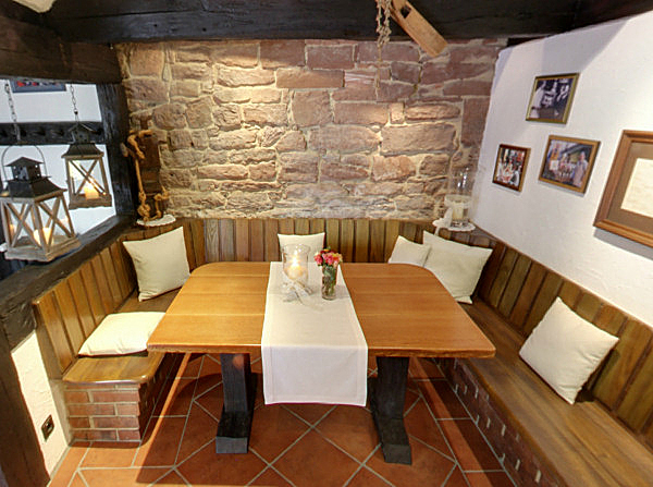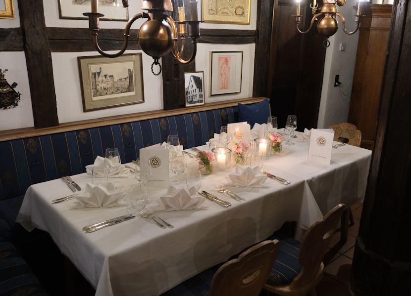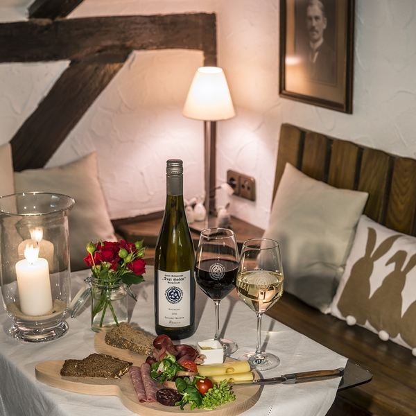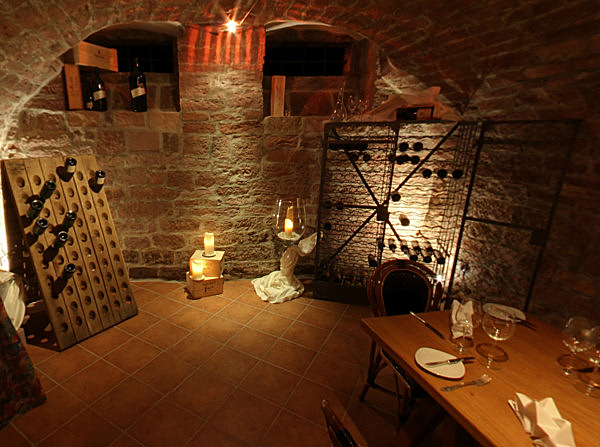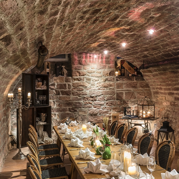 Unser gemütlicher Gewölbekeller mit 50 Plätzen eignet sich für Feierlichkeiten und Ausstellungen.